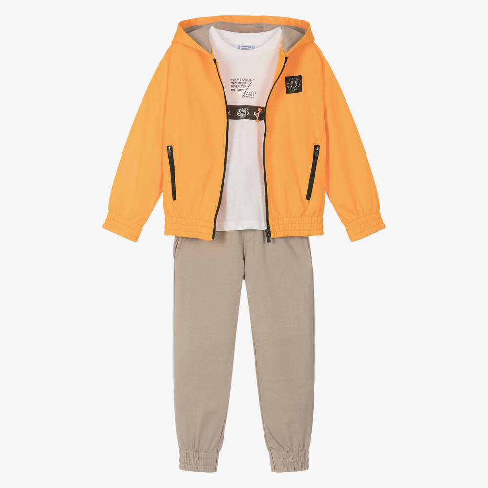 Boys Orange & Beige Cotton Tracksuit Set