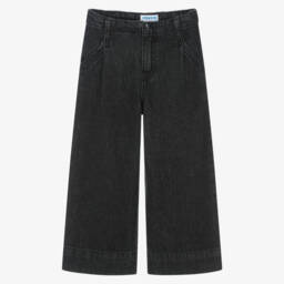 Stylish beige wide-leg jeans for older girls by Mayoral, made in soft recycled denim with a slight stretch for comfort. They are simply styled in a classic five-pocket design, with a gold logo jacron and a branded button.