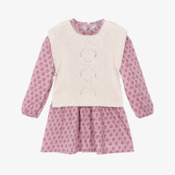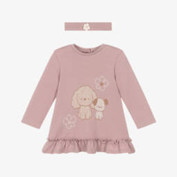 From Mayoral, a gorgeous pink tulle dress and headband set for little girls, with delicate gold foil dots for a touch of sparkle. Ideal for a special occasion, the dress has a classic silhouette with sheer puffed sleeves, pretty ruching on the bodice and a full gathered skirt. Fully lined for comfort, it fastens with a neat concealed zip and comes with a matching elasticated headband for an elegant finish.