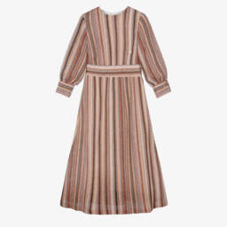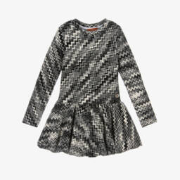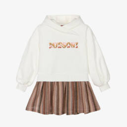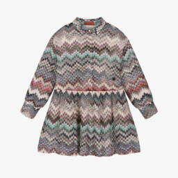 Girls pink dress by Missoni, the luxury designer. This easy-to-wear silhouette is made in the signature Missoni knit, with the iconic zigzag code featured in colourful pastels. The sporty striped waistband shapes the style. It fastens with a concealed zip on the back for a seamless illusion.