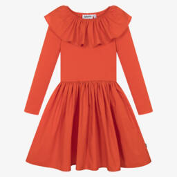 Adorable pale pink organic cotton jersey dress for little girls by Molo. Super soft and comfortable, this relaxed A-line style has cute bunnies printed on the front with matching flower motifs on the long sleeves. There are popper fastenings on one shoulder to help with dressing.