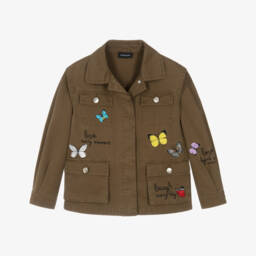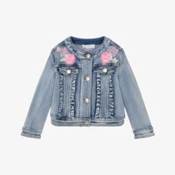 Smart pale pink tailored jacket for girls by Monnalisa, ideal for special occasions. Soft and lightweight, it fastens with silver-edged, pink enamel buttons and has faux front pockets. It is lined in branded jacquard satin for comfort.
