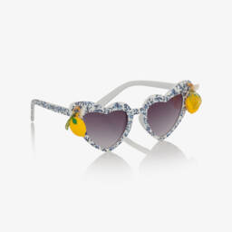 Fun and stylish, red cherry-shaped sunglasses for girls by Monnalisa, with sparkly diamanté detailing. The tinted lenses are made from durable polycarbonate and offer UV400 protection. They come in a gold faux leather case with a soft cloth for cleaning.