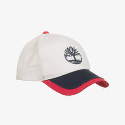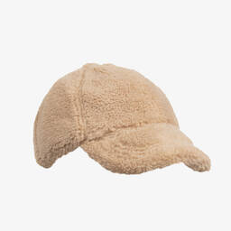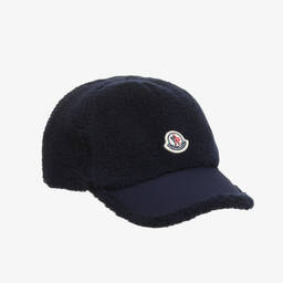Adorable blue cotton chambray cap for little boys and girls by Moschino, featuring the iconic Moschino Teddy Bear with a duck and four-leaf clover. This cute design has 3D ear appliqués and contrast white stitching.
