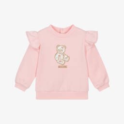Girls Pink Cotton Teddy Bear Sweatshirt
