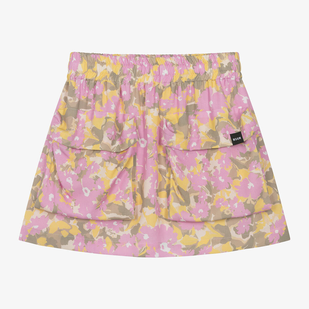 Lightweight and cool, this pink, yellow and khaki green skirt for girls is by MSGM. Made in a soft and durable cotton lyocell blend, it has useful, velcro-fastening patch pockets on the front, one with the brand's micro logo. It has a comfortable, elasticated waistband with an internal drawstring for a great fit.
