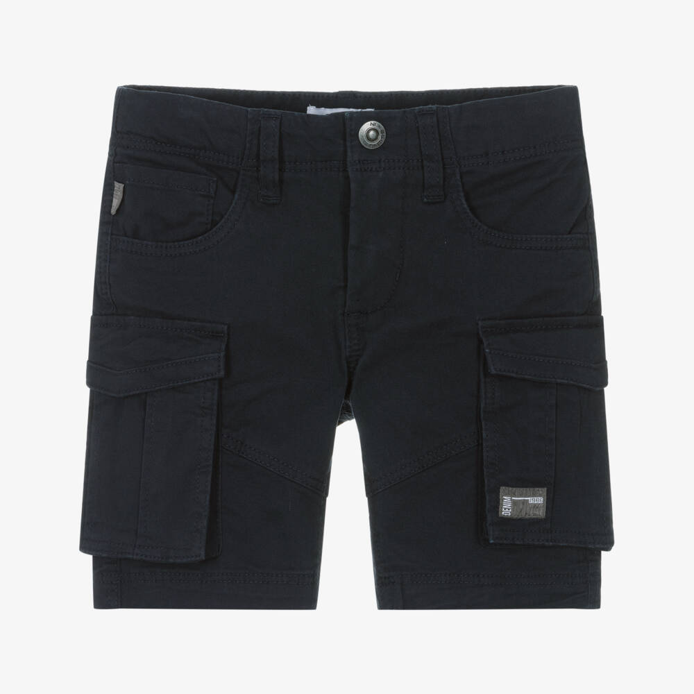 Boys navy blue cotton cargo shorts by NAME IT. Both comfortable and practical, they are made in soft, lightweight twill, with an adjustable waistband for a great fit. The front and leg pockets are both stylish and functional, making them ideal for adventures or casual outings.