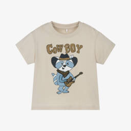 Super cute white organic cotton blend T-shirt for boys by NAME IT with a winking, embroidered red lobster on the front. Ideal for warm, sunny days, it is made in soft, comfortable jersey.