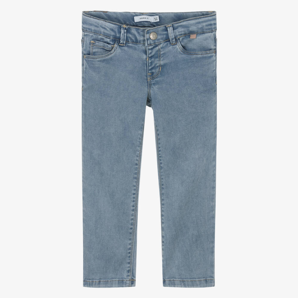 Beautifully soft and lightweight, these light blue jeans for girls are made in a stretchy Tencel blend with a comfortable, silky feel. Specially treated for a customized, faded look, this classic five-pocket style has a slim fit that flares towards the ankle. They fasten easily with a zip and popper and have an adjustable waist for a great fit.