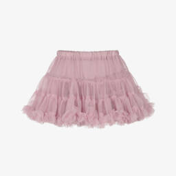Orchid pink skirt for girls by NAME IT, made in a soft and stretchy organic cotton blend. The jersey skirt is layered with glittery tulle fabric in fun, rainbow colours. It has a glittery gold, elasticated waistband for easy dressing.