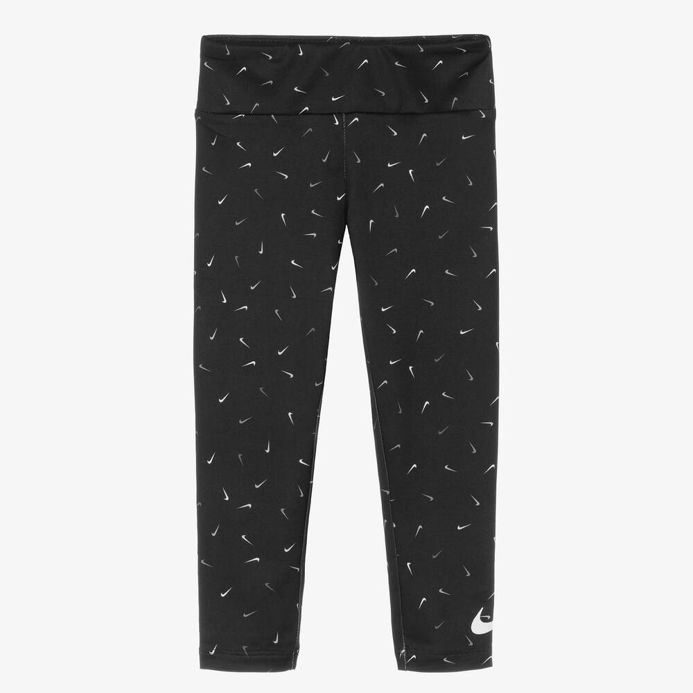 Girls Black Swoosh Leggings