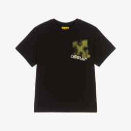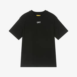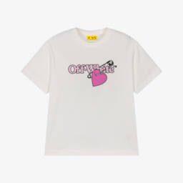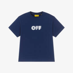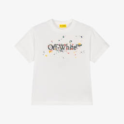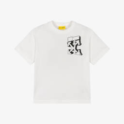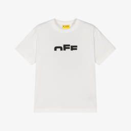 White cotton T-shirt for boys by luxury streetwear label Off-White. Instantly recognisable, this casual top has a bold 'I'm Off' motif and the brand's signature bookish logo printed in blue and black on the front.