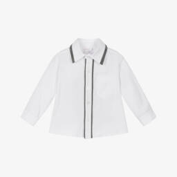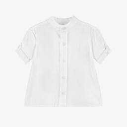 Pale yellow shirt for boys by Patachou, made in a cool and comfortable linen and cotton blend. Suitable for smart or causal wear, it has a tonal embroidered logo on the chest and button fastenings on the front. The long sleeves can be rolled up and secured with a tab and button for versatile wear.