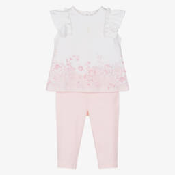 A lovely white leggings set for little girls by Patachou, made in soft cotton jersey. Featuring navy blue striped trims for a nautical look, the tunic top has pretty capped sleeves and back popper fastenings. The leggings have turned up ankle cuffs and a gently elasticated waist for a comfortable fit.