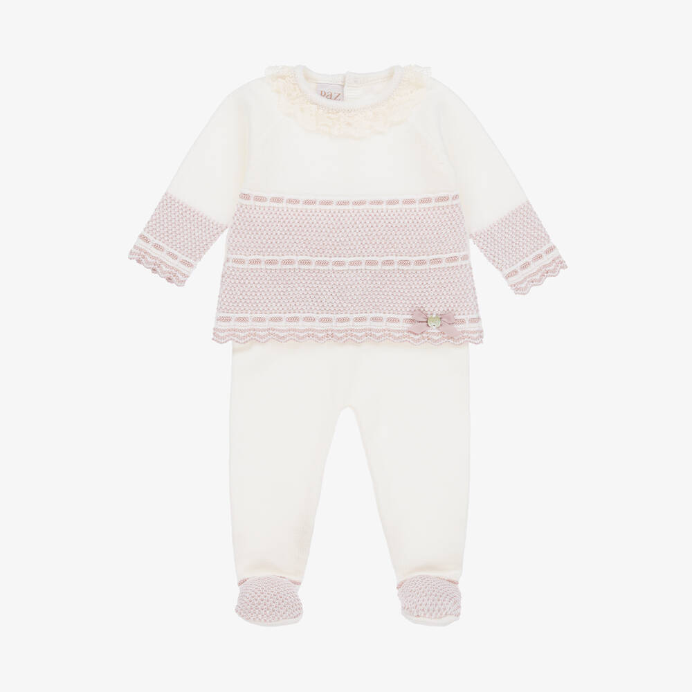 Ivory & Pink Merino Wool Knitted 2 Piece Babygrow