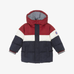 A lovely lightly padded blue cotton jacket for girls from Petit Bateau. Made in soft, quilted twill, this comfortable piece fastens with a zip on the front to keep warmth in and is patterned with a tonal heart print.