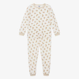 Pretty pink pyjamas for girls by Petit Bateau, made in beautifully soft cotton jersey. These comfortable pyjamas are snug fitting with ribbed cuffs and are printed with a logo of hearts with the brand name for a designer finish.
