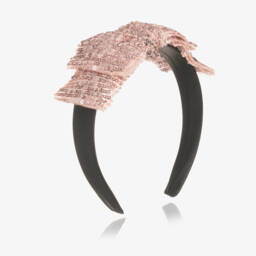 Pink tie headband for girls by Phi Clothing, made in soft cotton poplin. It is patterned with a lovely pink and green floral print to add a pretty finishing touch to any hairstyle. It has an elasticated panel for added comfort.