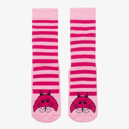 Delightful purple slipper socks for girls by Playshoes, made from soft and stretchy textile with faux leather trims. Ideal for comfortable indoor play, the soles are flexible, padded, and have non-slip grippers on the bottom. In lovely pastel shades, one sock has an adorable unicorn design and the other has pretty stripes.