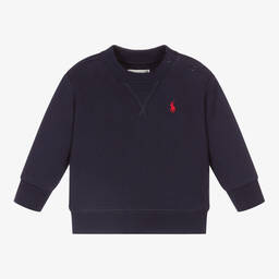 Blue Ralph Lauren sweatshirt for boys, made in a comfortable cotton blend jersey. Soft and mid-weight, it has an embroidered navy blue logo across the front for a branded finish.
