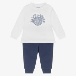 A stylish white trouser set for girls by Ralph Lauren, made in mid-weight cotton canvas. The sleeveless top is structured and features an elegant cross-over design on the back, with button accents and an embroidered logo on the front. The wide-leg trousers are pleated on the front and have a comfortable elasticated waist, with side button fastenings and classic turn ups.