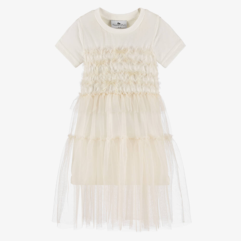 Girls White & Ivory Tulle Dress