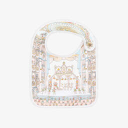 Pale pink and ivory striped bib for baby girls by 1 + in the family, made in a soft cotton and modal blend jersey. Fastening with poppers on the back, it is kind on delicate skin and ideal for catching food spills and dribbles.