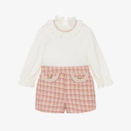 So smart for younger boys, a green and white shorts set by Abel & Lula. Made in a lightweight cotton and linen blend, this lovely little outfit is ideal for a special occasion on warmer days. The shorts have an adjustable, partially elasticated waist for a great fit, and the shirt has a detachable bow tie secured with a simple button for ease.