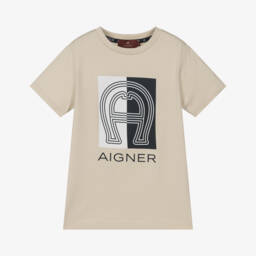 In a stylish boxy fit, this ivory T-shirt for girls by AIGNER, has a pink and glittery gold 'A' horseshoe logo motif on the front. It is made from soft and comfortable cotton jersey, with semi-sheer tulle sleeves, embellished with colourful sequins.