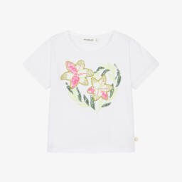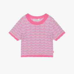 Shimmering with iridescent sequins, this eye-catching Billieblush top for girls is ideal for a party. It has an underlayer of soft pink jersey which is visible on the neckline cuffs and hem and has a cute hearts design on the front in yellow, orange and pink.