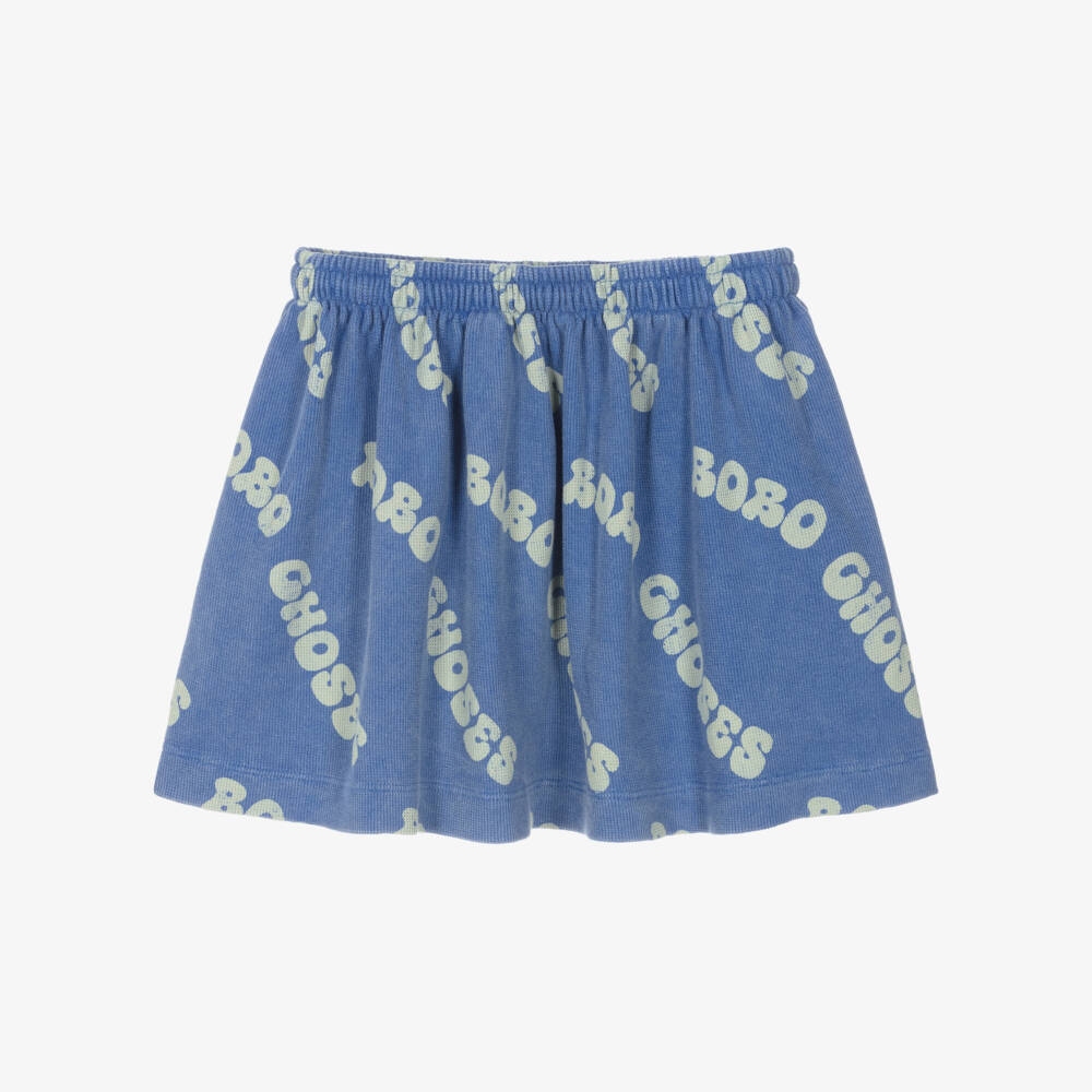 Blue skirt for girls by Bobo Choses, made in soft towelling. This quirky style is printed with the designer's logo and has a relaxed, floaty shape. The elasticated waist ensures comfort with every wear.
