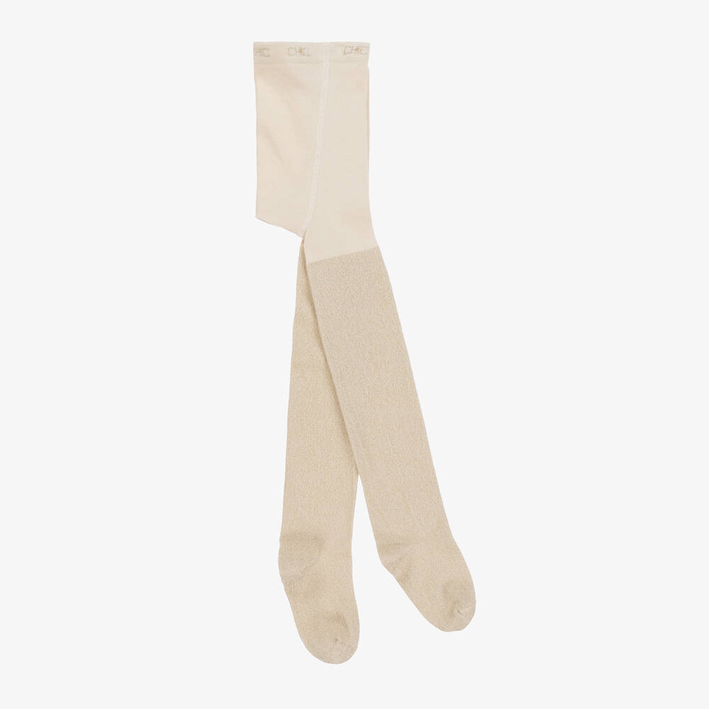 Girls Gold Glitter Cotton Tights