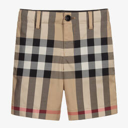 Luxury Merino wool shorts for baby boys by Burberry, styled in the designer's classic Icon stripe. Featuring bold colours of ivory, beige, red and black, they have an adjustable drawstring waist and a logo patch on one leg. Responsibly sourced wool.