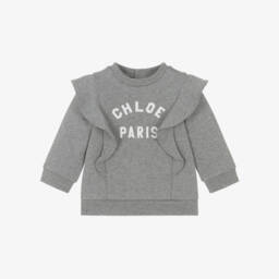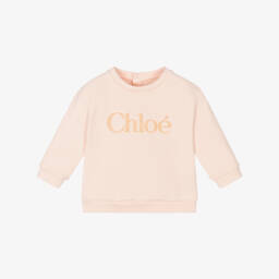 Navy blue organic cotton sweatshirt for girls by luxury French label Chloé, with an appliqué logo in contrasting ivory. Made in mid-weight jersey, this classic casual style has a contemporary oversized fit and side seam pockets for a practical finish.