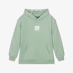 Inspired by the adult collection, this white hoodie for boys and girls by DKNY is made in soft, mid-weight cotton jersey. Great for comfortable casual wear, this relaxed style has a useful pouch pocket on the front and a cropped, black logo print for instant designer appeal.