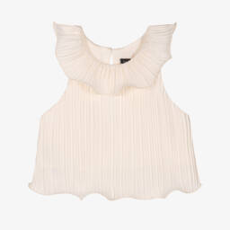 So stylish for older girls, this ivory halterneck top is from Italian label Fun & Fun. Made in soft, smooth cotton and fully lined for comfort, it features a beautiful tulle flower appliqué with pearl and shiny silver bead detail. There is an exposed zip fastening on the back and the top fastens with ties.