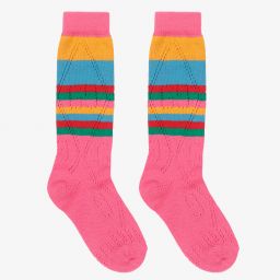 A classic luxury staple, these beige and brown socks for boys and girls are by Italian fashion house Gucci. A mini version of the adult style, they have the signature GG logo pattern and trims in brown. Soft and stretchy, they are made from a cotton-rich knit.