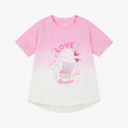 Beige T-shirt for younger boys by Guess, made in soft cotton jersey. This casual style is patterned with an abstract, tropical-themed graphic for a cool, summer look, with the brand's iconic red Triangle logo adding instant designer appeal.