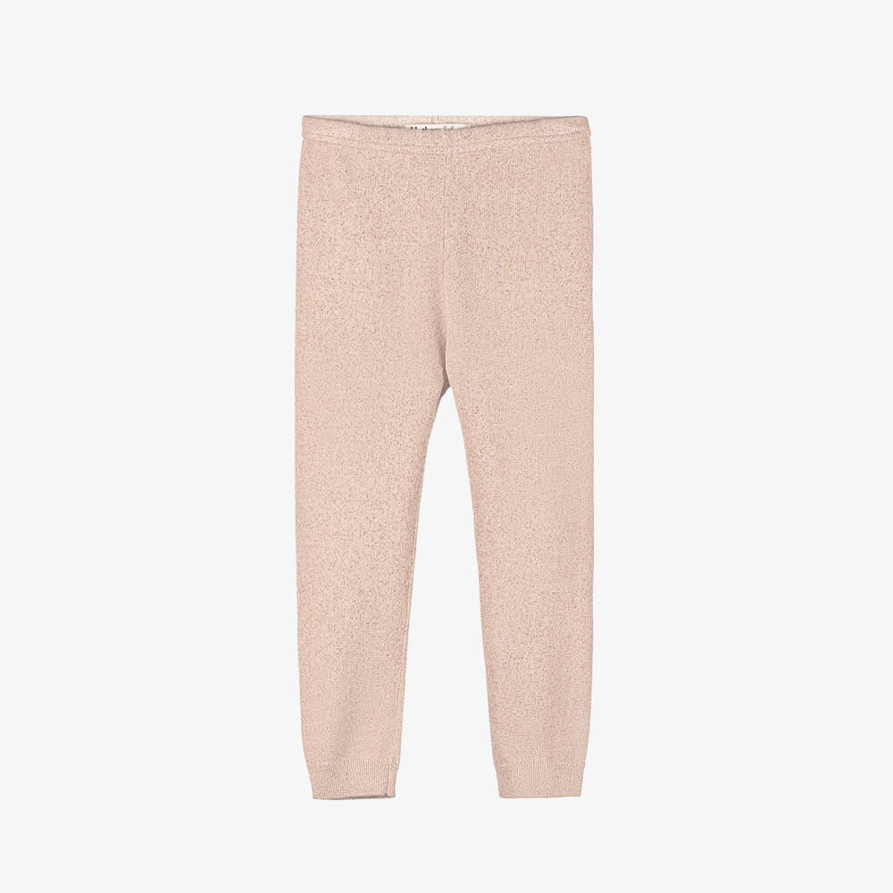 Lovely and shimmery, these rose gold knitted lurex leggings for baby girls are by Canadian brand, Hatley. Full length, they are made in a soft and stretchy cotton blend and have a gently elasticated waist.