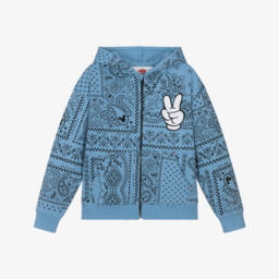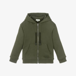 Black hooded zip-up top for older boys by iDO Junior, made in comfortable cotton jersey. Designed in a relaxed fit, this casual piece has cool, street-themed graphics on the front and back. There is a neon yellow flap pocket on one sleeve, useful front pockets and a split hemline, which is longer on the back.