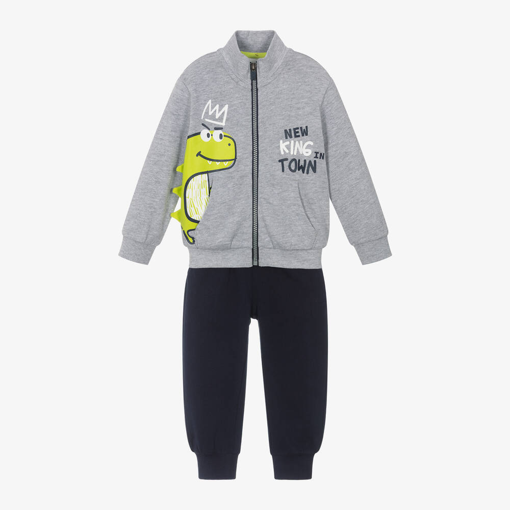 Boys Grey & Blue Dino Cotton Tracksuit