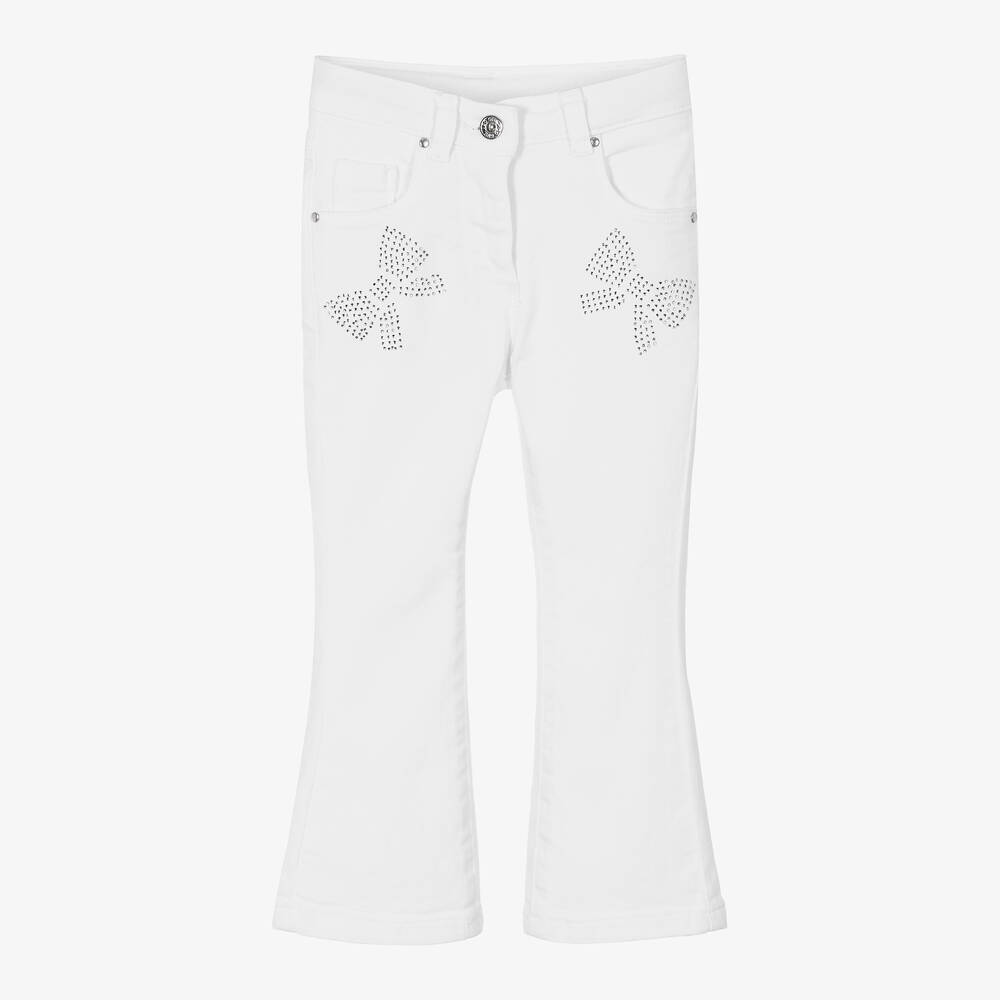 Girls White Denim Diamanté Bow Jeans