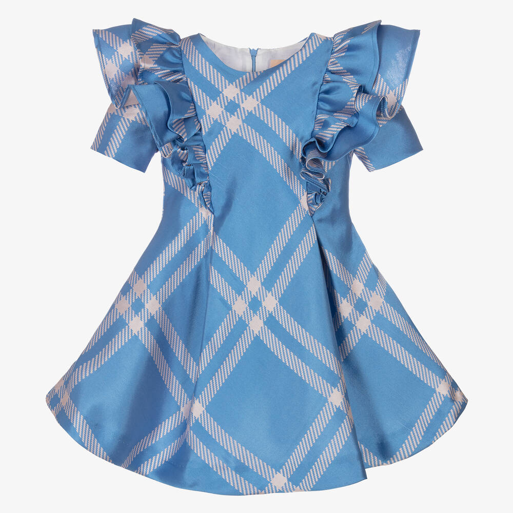 Синее атласное платье в клетку для девочек
