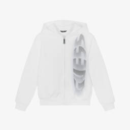 Teen girls navy blue zip-up hoodie by American brand Juicy Couture, made in super soft velour. It has a branded silver metal zip pull and iridescent diamanté logos on the front and back for a casual glam look. It features a cosy hood and front pouch pockets.