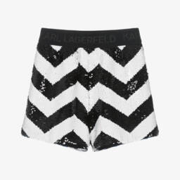 Metallic gold lamé shorts for girls by KARL LAGERFELD KIDS, with a gorgeous shimmer effect. These shorts with pockets have turned-up cuffs and pleats on the front for a smarter, tailored look. They have a discreet side zip and a fully adjustable waistband for a good fit.