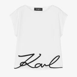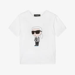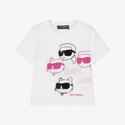 White leather trainers for girls by KARL LAGERFELD KIDS. Detailed with glittery silver logos on the tongue and heel, they feature Karl and Choupette artwork on the side, with sparkly diamantés for instant designer appeal. Fastening with laces, these eye-catching shoes are lined in smooth faux leather and have a chunky non-slip rubberised sole.