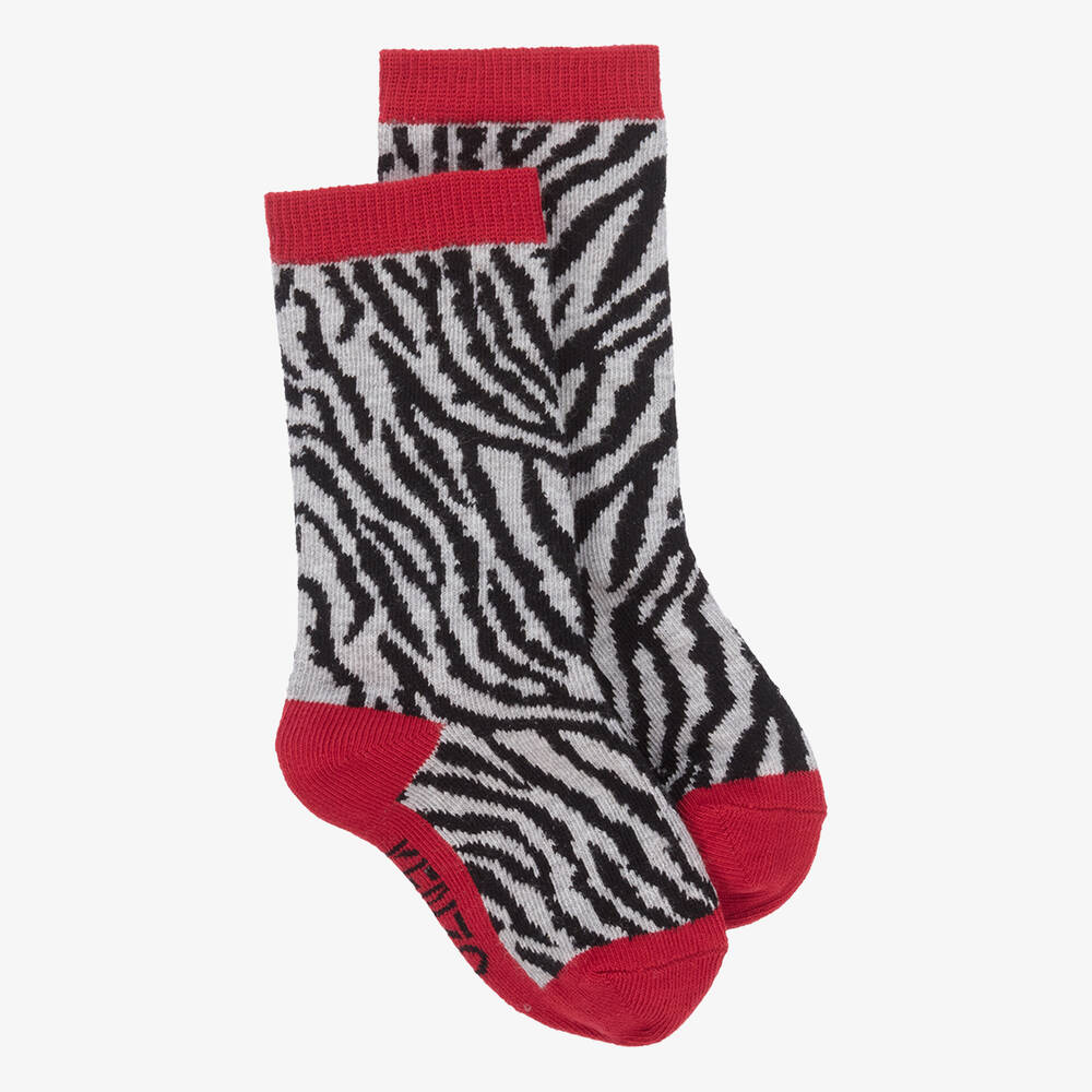Make a statement in these fun zebra print socks for boys and girls, by KENZO KIDS. Made in a soft and stretchy cotton blend, they have contrasting red trims and the brand's logo stitched underneath the foot for a logo-inspired finish. They form part of the Nigo KOTORA capsule.