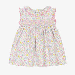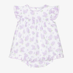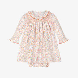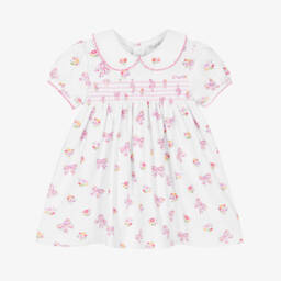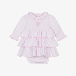 Очаровательное розовое платье из хлопка пима для малышек от Kissy Kissy. Украшено белыми атласными розами, милыми оборками и очаровательными рукавами-фонариками с отделкой пико. Очень мягкое, с легкой подкладкой, застегивается на пуговицы сзади.