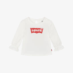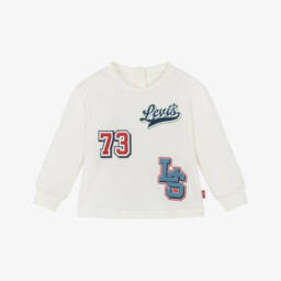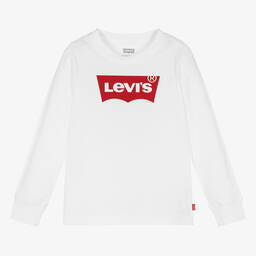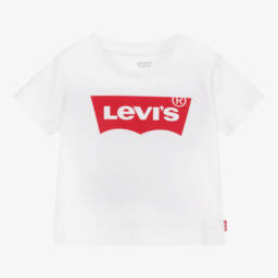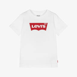 Белый топ для мальчиков от Levi's из мягкого и комфортного хлопкового джерси с принтом логотипа спереди на тему гор в бежевом белом и коричневом цветах. Красная бирка бренда на боковом шве добавляет фирменный штрих.
