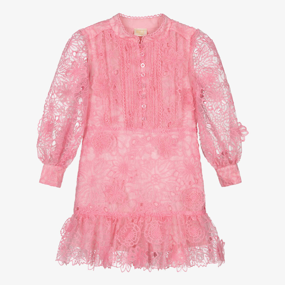 Это платье в великолепном розовом оттенке от Marlo Kids для девочек выполнено из легкой органзы с фирменной цветочной вышивкой. Длинные прозрачные рукава аккуратно собираются на плечах и застегиваются на манжете, добавляя объема. Аккуратные складки и пуговицы на лифе придают платью винтажное очарование, а изящная волнистая отделка вокруг выреза добавляет прекрасный завершающий штрих.